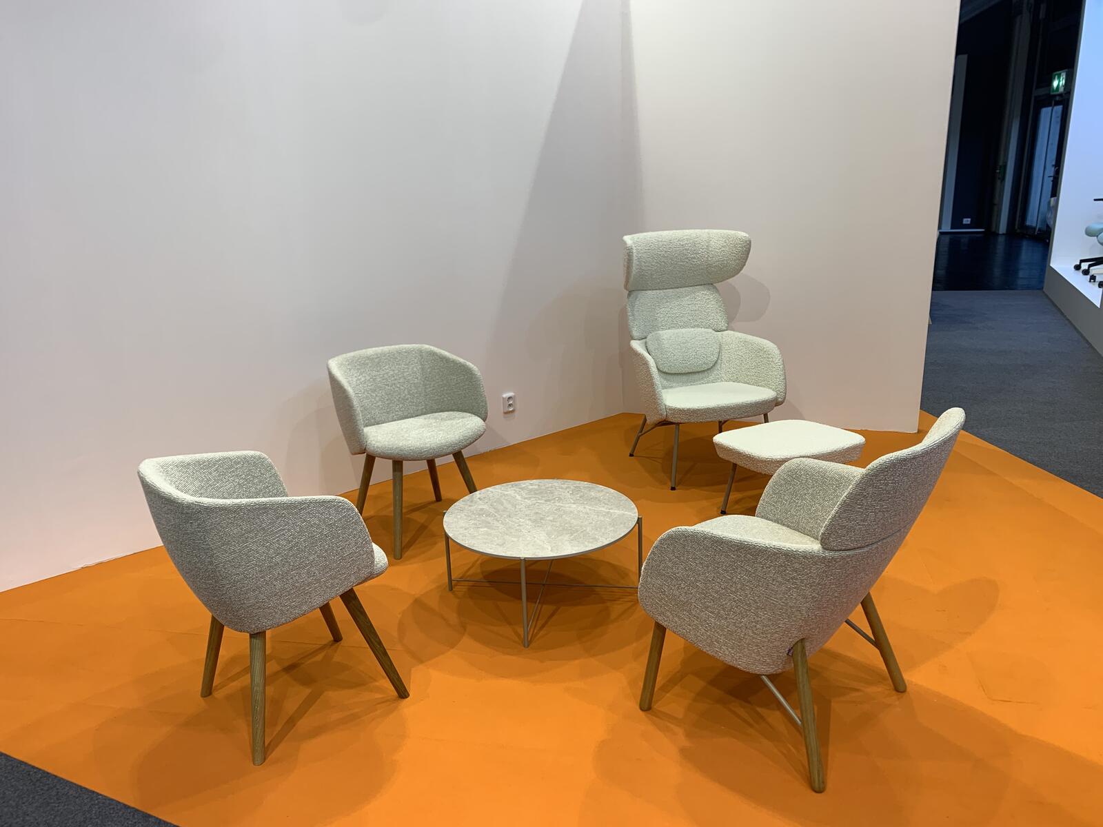 À part des nouveaux produits, nous exposions aussi nos collections déjà établies. C’étaient par exemple collections de sièges de bureau Flexi, Victory et le nouveau siège de bureau Muuna, créées par designers italiens Massimo Costaglia et Giulio Mazzanti. Vous pouviez aussi voir des tabourets de bar et des chaises soft de la collection Edge, ou la collection Winx qui a été élargie cette année par un tabouret de bar et une chaise. Et enfin, nos tables de la collection Connect étaient également là.
