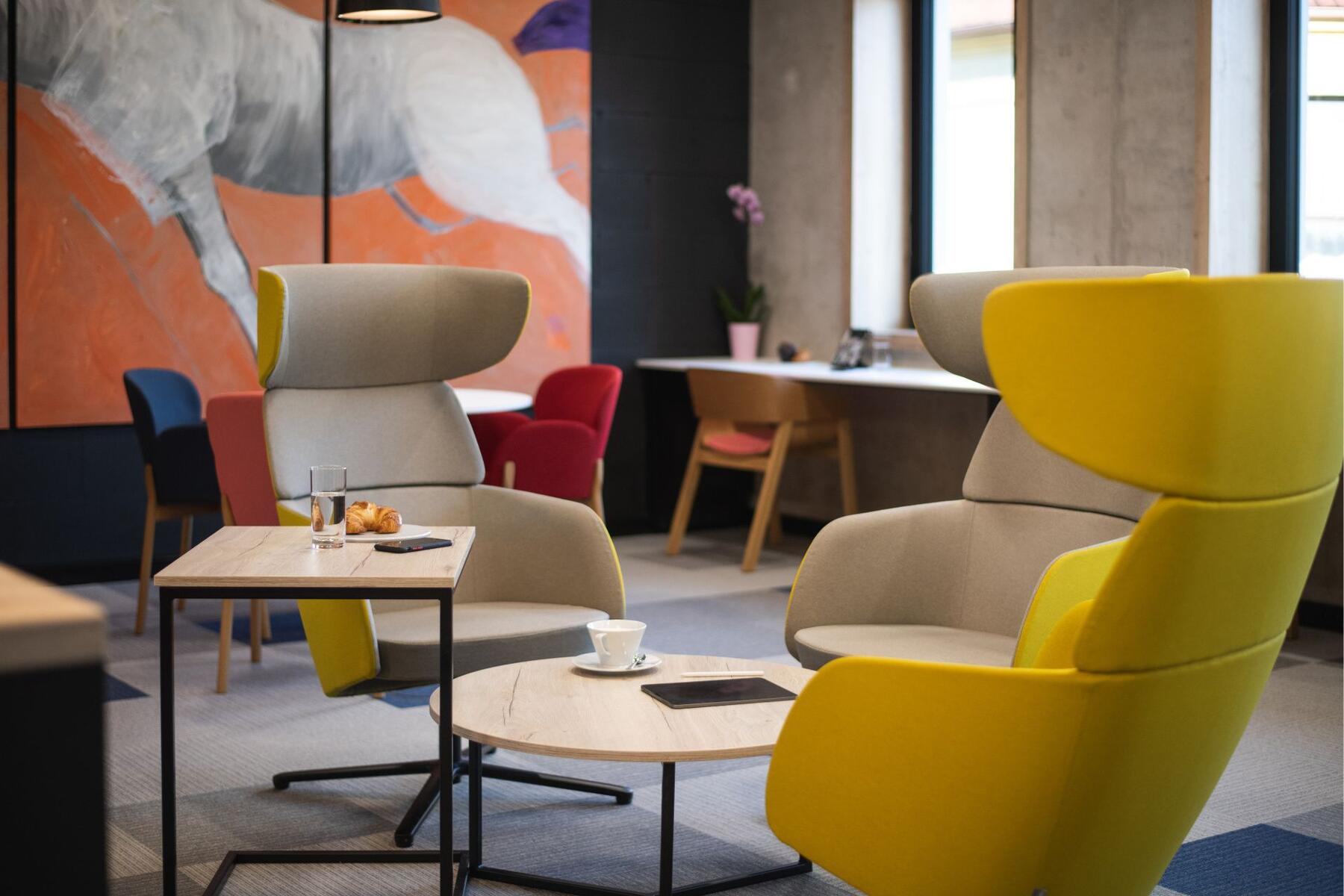 Espaces de travail et de détente — confortables, représentatifs et prêts pour un usage quotidien.