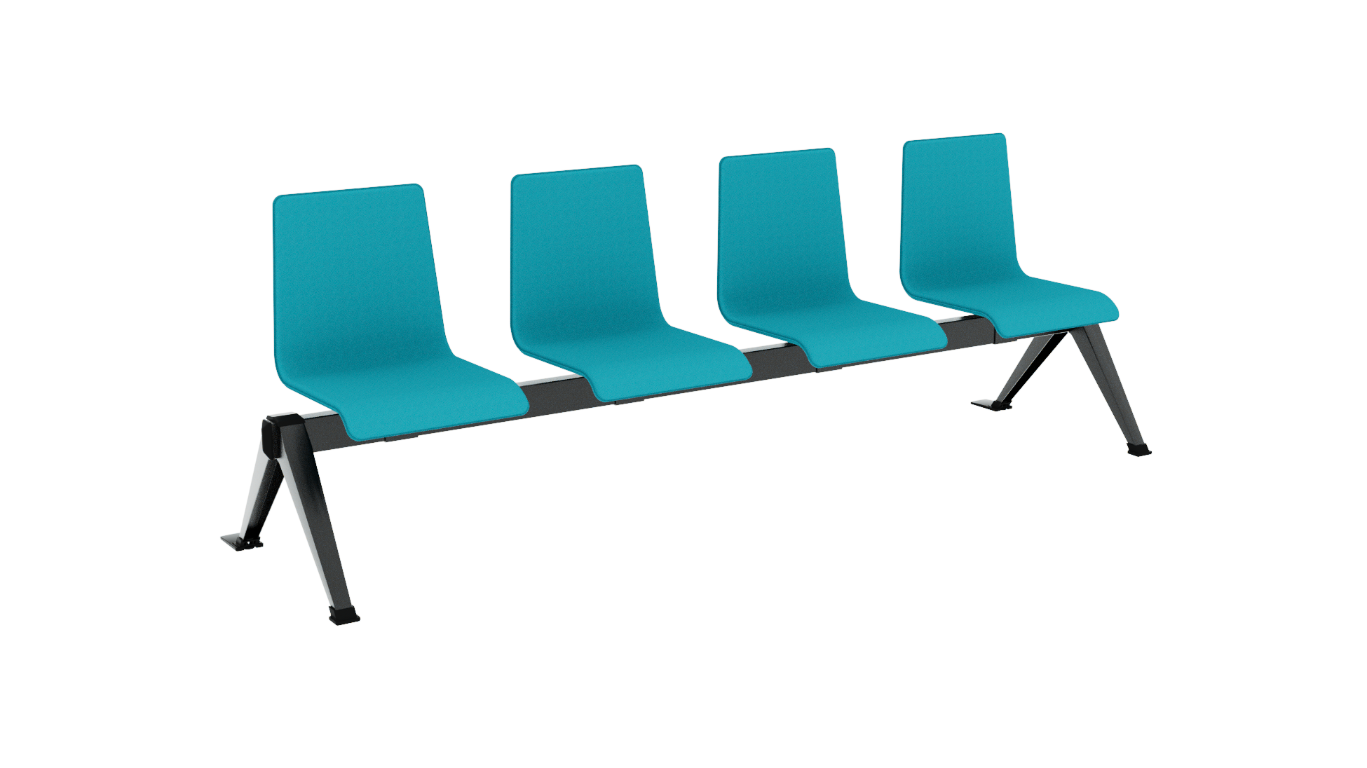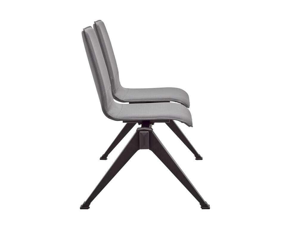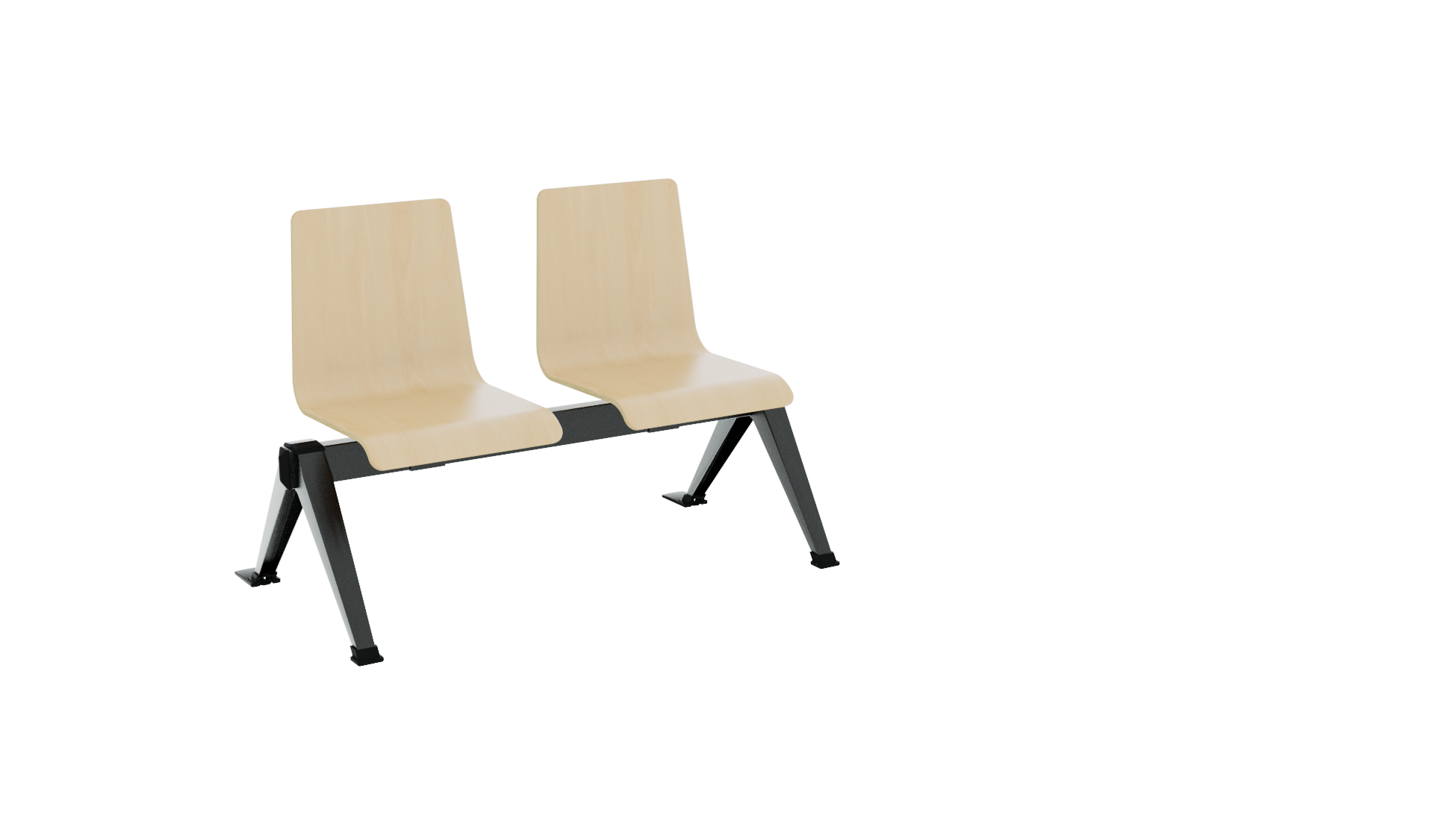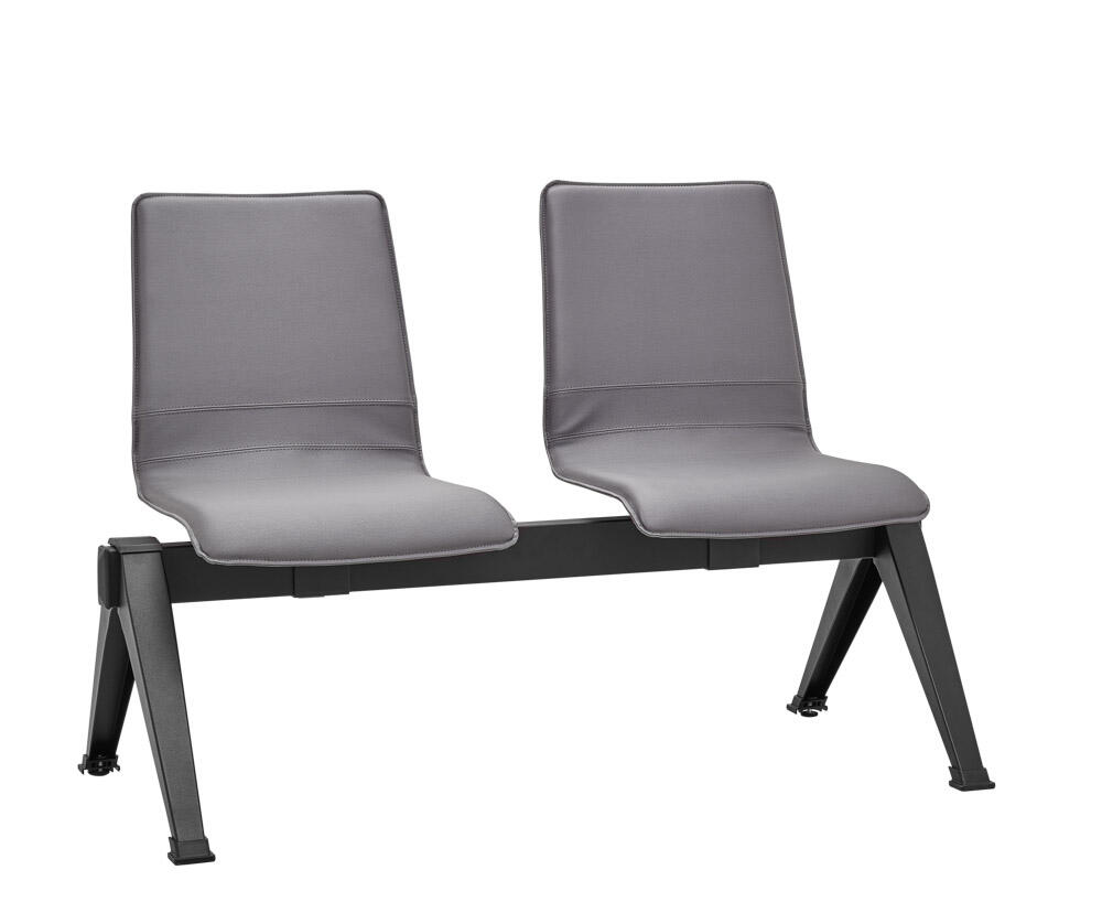 Le banc est monté sur une poutre noire avec des pieds en métal noir.