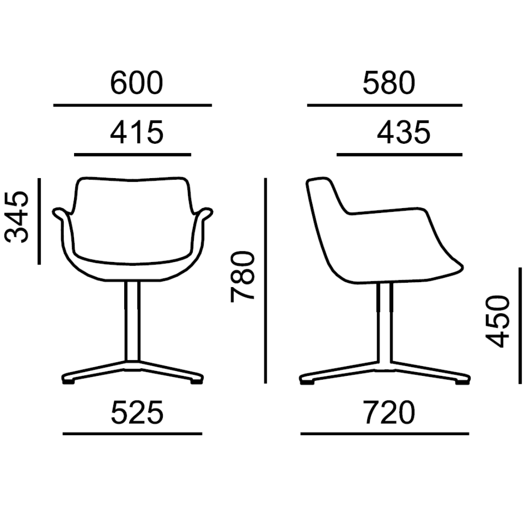 Křeslo MI 867.01 je posazeno na centrální podnoži se čtyřramenným křížem. Provedení černá nebo kombinace leštěný hliník - chrom. Ostatní barevnosti dle vzorníku RAL na dotaz.