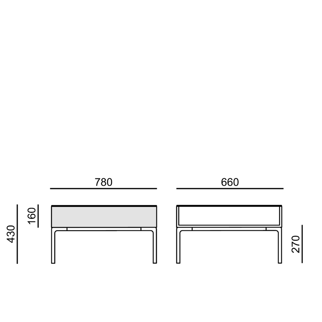 Konferenční stolek 660 x 780 mm, výška 430 mm.
