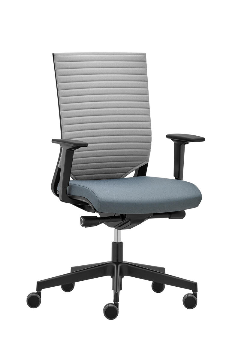 Otočná kancelářská židle s konstrukcí odděleného čalouněného sedáku a fixní zádové opěry, čalouněné speciální látkou LINE, s možností výškově stavitelné bederní podpěry. Židle je vybavena synchronní mechanikou ST2 a splňuje nároky na snadné ovládání, údržbu a servis.