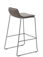 Celočalouněná barová židle na drátěné podnoži. Nízká zádová opěra nabízí dostatečnou oporu a komfort i při delším sezení. Sendvičová skořepina nabízí možnost dvoubarevného čalounění.