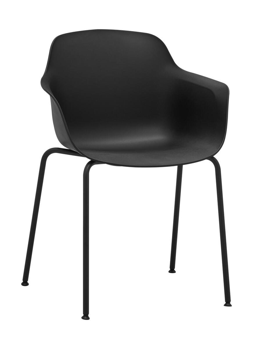 Víceúčelová židle, celoplastová skořepina s područkami, čtyřnohá kovová podnož černá.