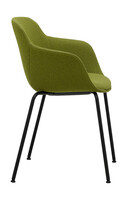 Víceúčelová židle, celočalouněná plastová skořepina s područkami, čalouněný segment segáku pro zvýšený komfort, čtyřnohá kovová podnož černá.