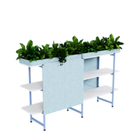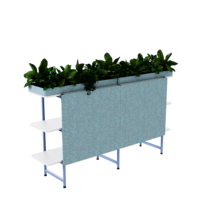 Třípatrový regálový systém s možností doplnění PET panelu pro větší soukromí a lepší akustické vlastnosti. Ideální řešení pro kanceláře, kde pomáhá oddělit pracovní místa a zlepšit akustický komfort. Dostupný také ve dvojité variantě pro rozšířené úložné a dělící možnosti.