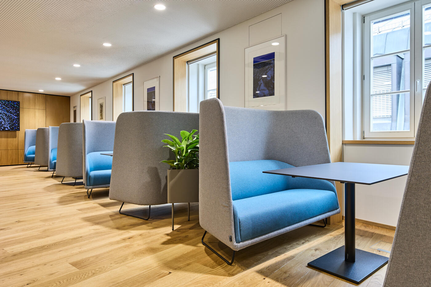 Pro sídlo Kärntner Sparkasse AG v Klagenfurtu jsme vybavili nově zrekonstruované pracovní i odpočinkové zóny nábytkem v souladu s korporátní identitou i nároky na pohodlí.