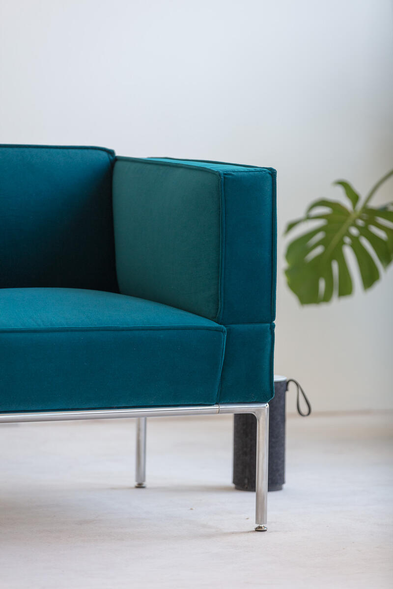 Trojmístná sedačka vyniká výrazným komfortem sezení díky vlnovcovým pružinám a změkčeným hranám zádové pěry. Elegantní detaily prošívání, chromový trubkový rám a možnost kombinace čalounění řadí sedačku do kategorie executive.