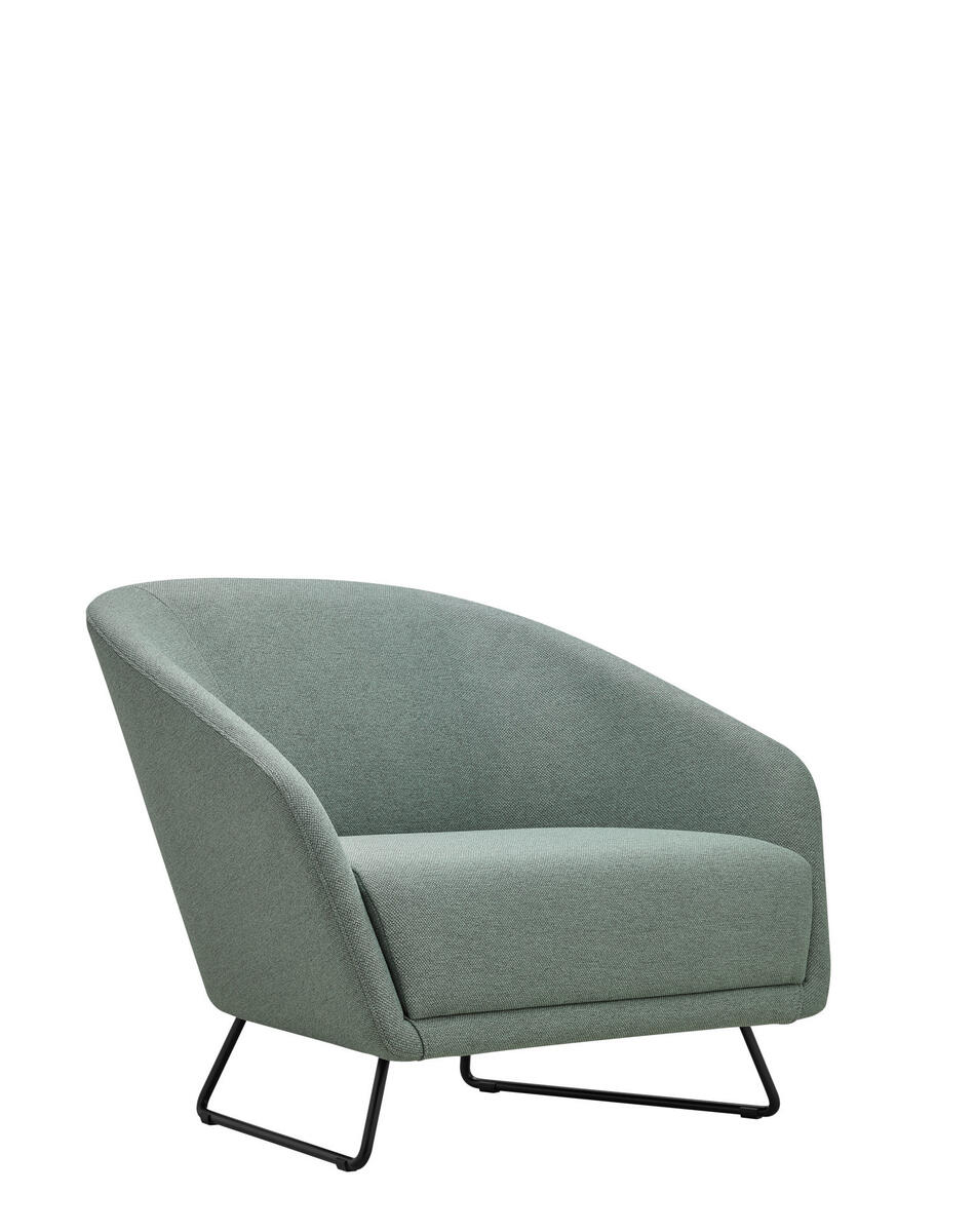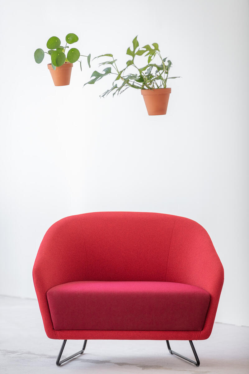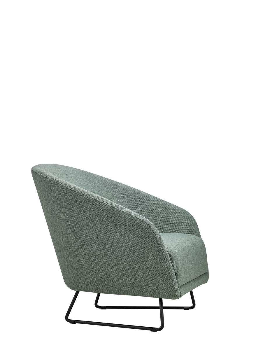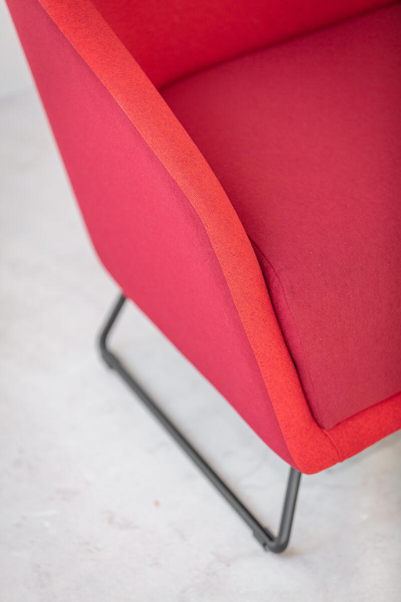 Celočalouněná mini-sedačka oblých tvarů s možností čalounění sedáku a korpusu opěry ve třech různých barvách. Sedačka je v základním provedení posazeno na černém kovovém rámu s plastovými kluzáky.