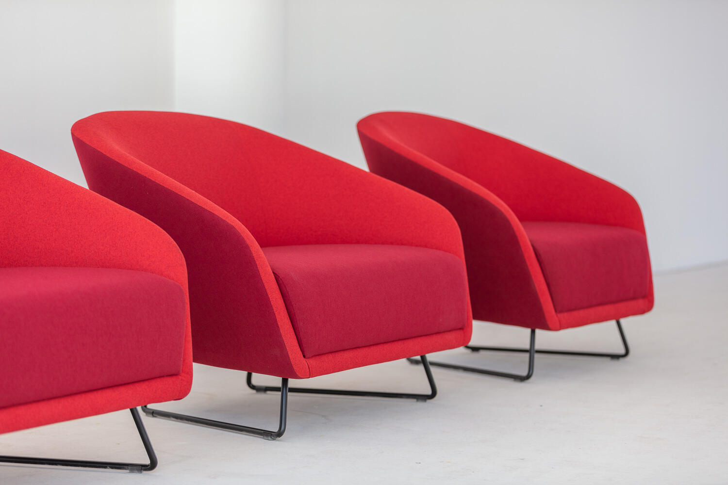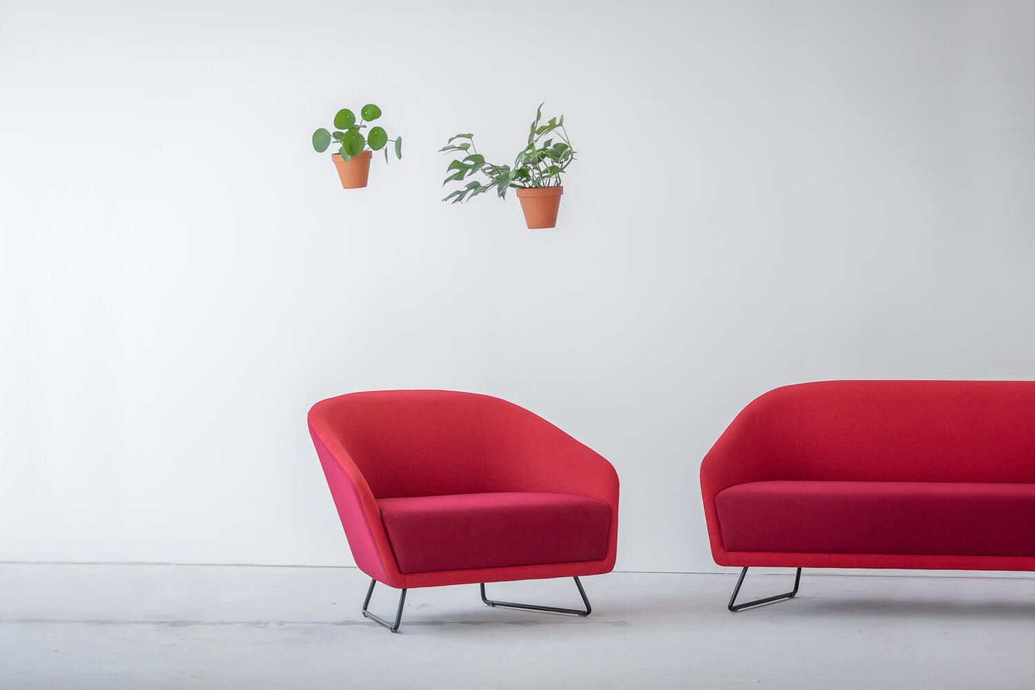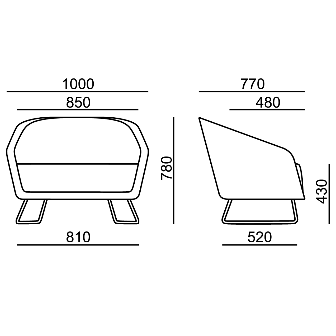 Celočalouněná mini-sedačka oblých tvarů s možností čalounění sedáku a korpusu opěry ve třech různých barvách. Sedačka je v základním provedení posazeno na černém kovovém rámu s plastovými kluzáky.