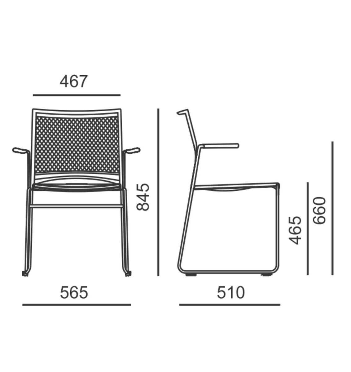 Univerzální plastová (PP) židle s područkami, čalouněným sedákem a síťovanou opěrou na tenkém vysokopevnostním rámu. Moderní a lehce působící design zaručující kvalitní a pohodlné sezení. Vhodná do veřejných prostor s multifunkčním využitím. Židle splňuje vysoké nároky na stohování (až 45 ks na transportním vozíku). Základní paleta plastů – černá a bílá. Rozšířená paleta plastů – modrá, červená, zelená, písková a šedá. Židle WEB lze vybavit plastovými/drátěnými spojkami pro spojování do řad.